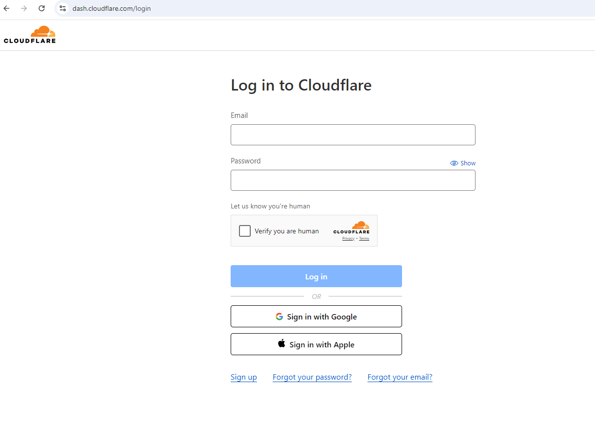 آدرس ورود به پیشخوان کلودفلر https://dash.cloudflare.com/login است که با وارد کردن آن به صفحه زیر هدایت میشوید.