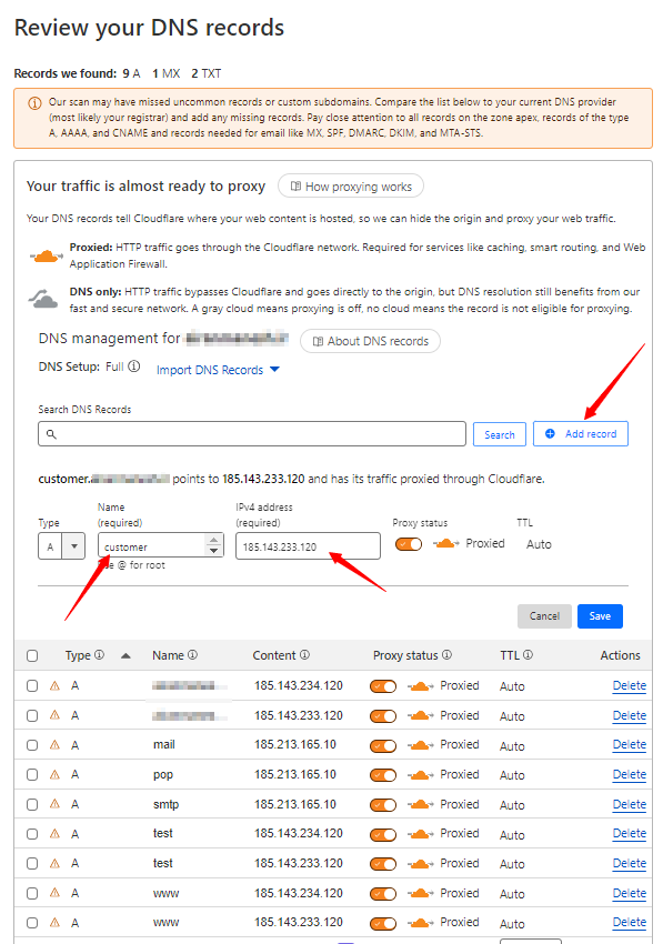 در اینجا ما رکوردی تستی با نام customer ایجاد کردیم که آیپی 185.143.233.120 برای آن در نظر گرفته شده است.