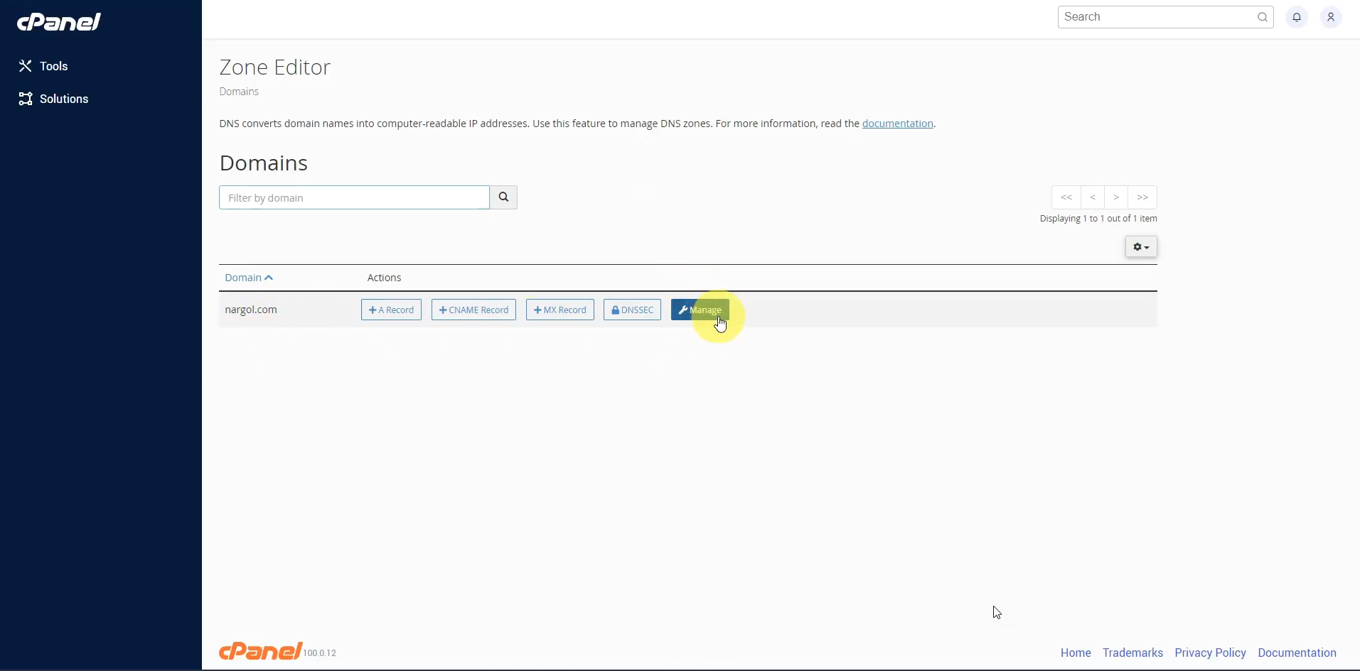 - روی دکمه manage کلیک کنید تا رکورد های دامنه مربوطه را به شما نشان بدهد.