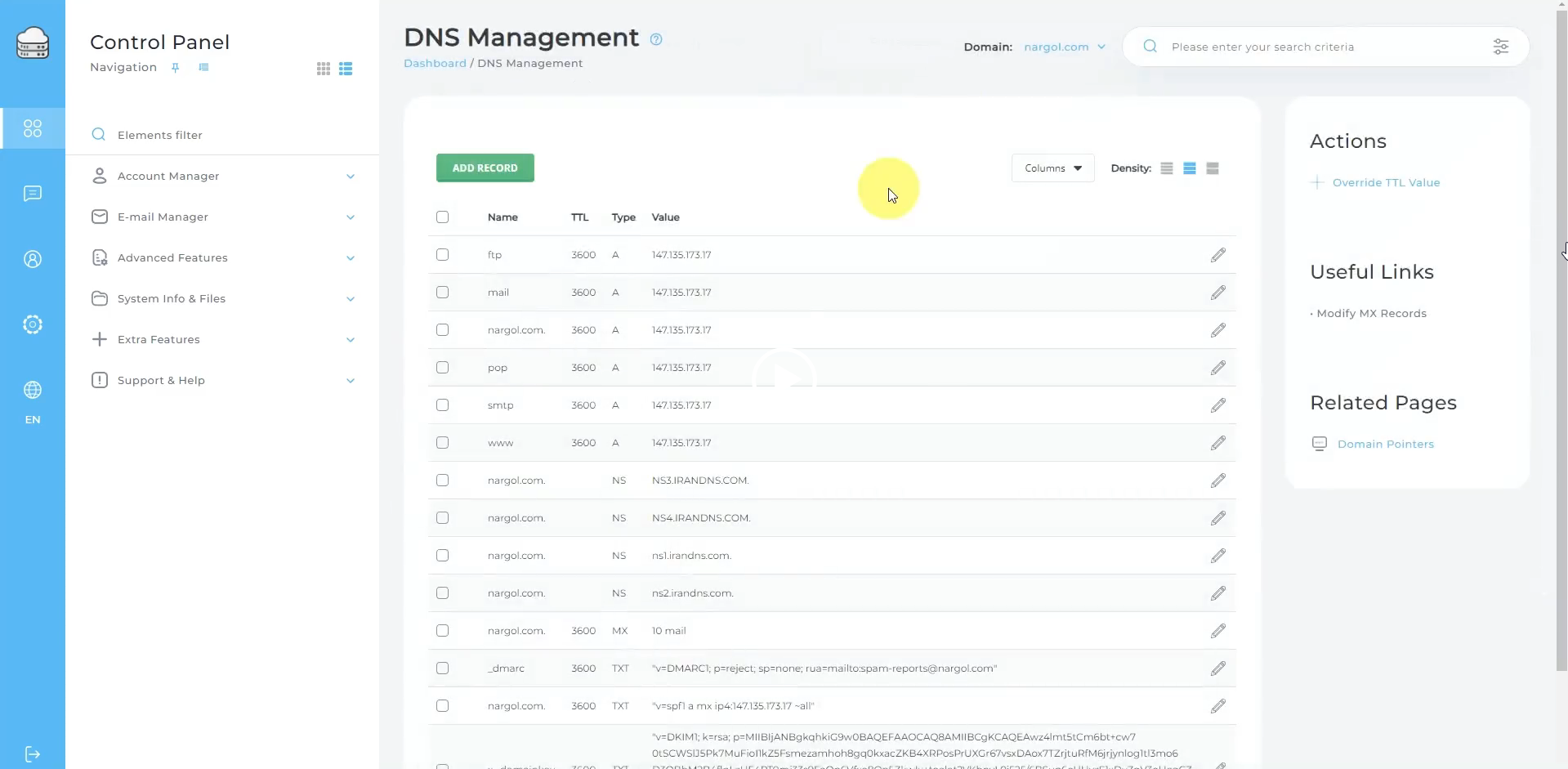 مدیریت رکورد های DNS