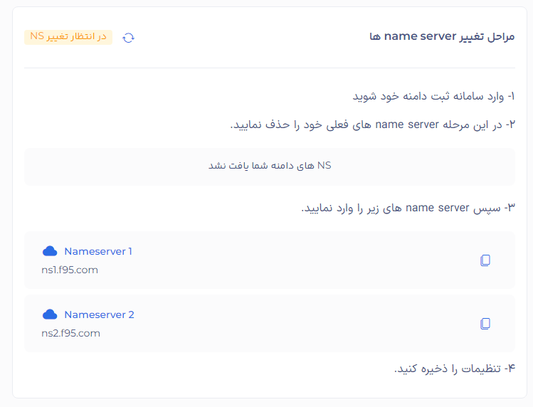 دقت کنید که تغییر NS ها ممکن است تا چند ساعت زمان ببرد.لطفا تا تغییر NS ها کمی صبر کنید.