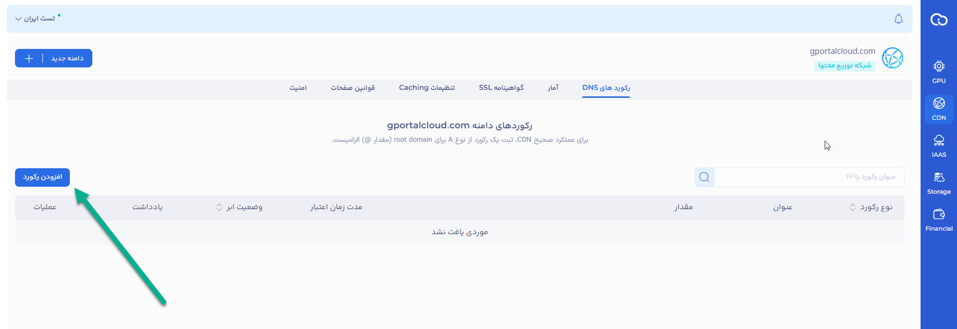 اگر هیچ رکوردی برای دامنهی شما به شکل خودکار منتقل نشده بود و یا رکورد ها به طور کامل ایجاد نشده بود، باید رکوردهای DNS مربوط به دامنهی خود را از قسمت افزودن رکورد به صورت دستی اضافه کنید.