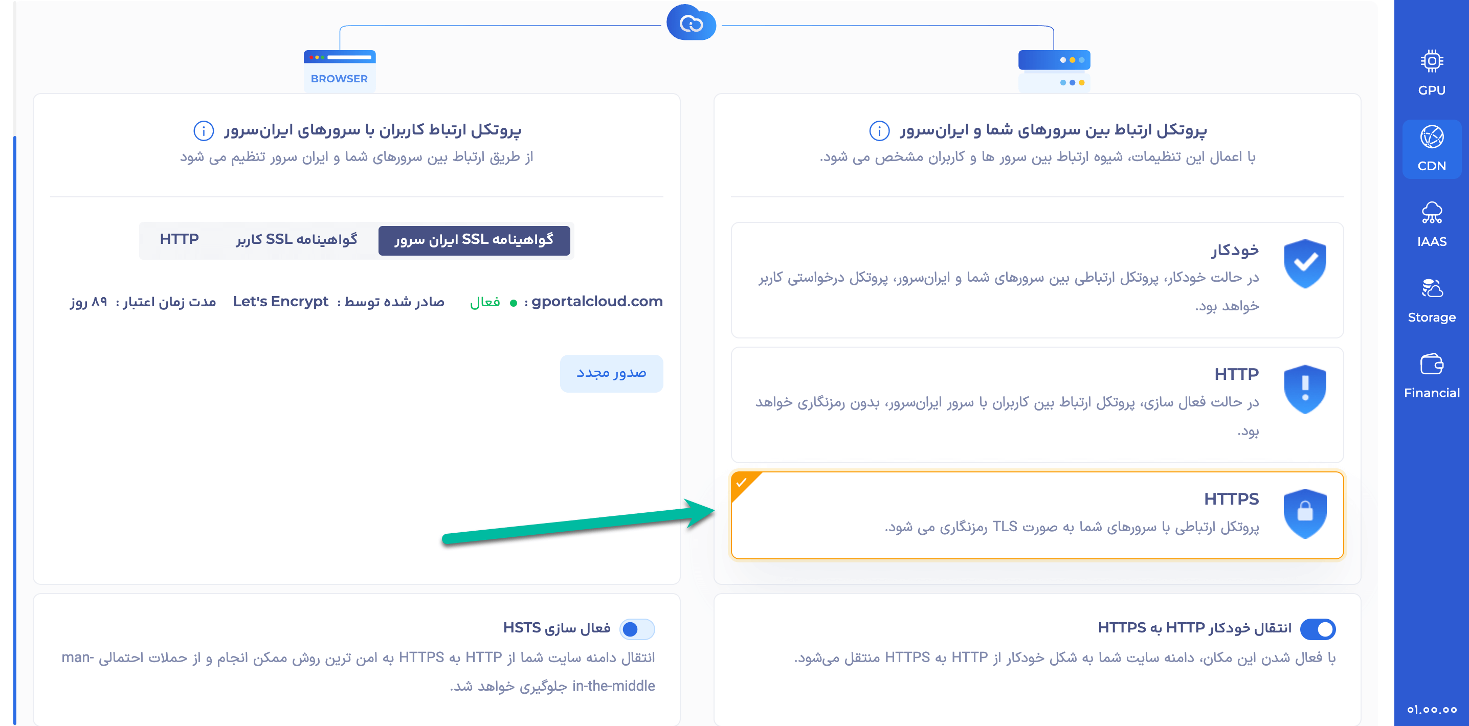 اگر گواهینامه SSL برای شما فعال نبود، مطابق تصویر زیر SSL را برای خود فعال کنید.