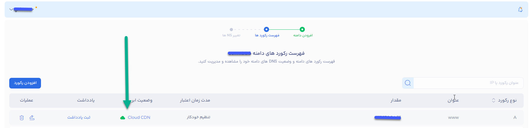 7- پس از تغییر NSهای دامنه، CDN شما فعال می شود.