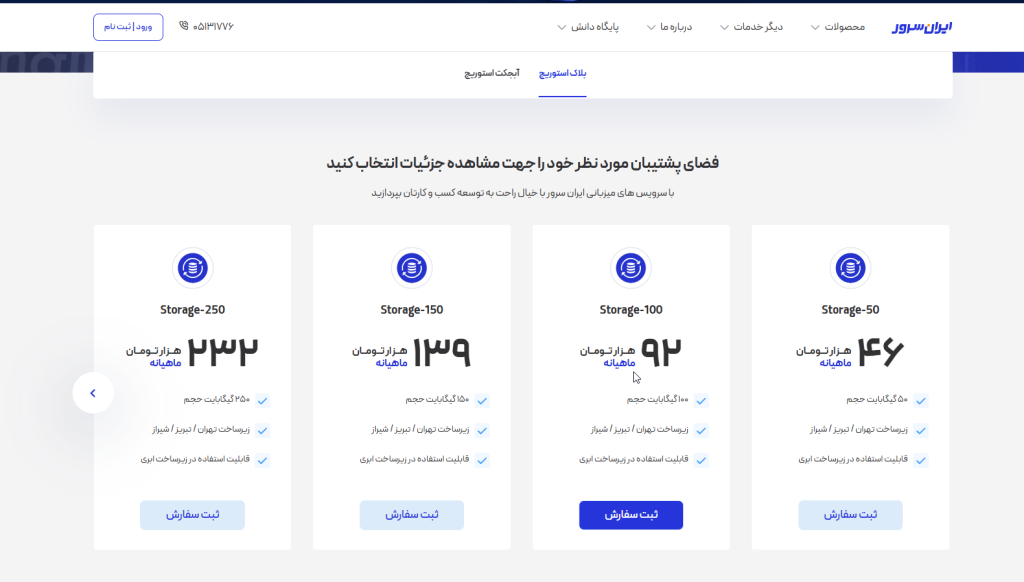 از منوی سایت، مسیر محصولات > خدمات ابری > دیسک ابری را انتخاب کنید.