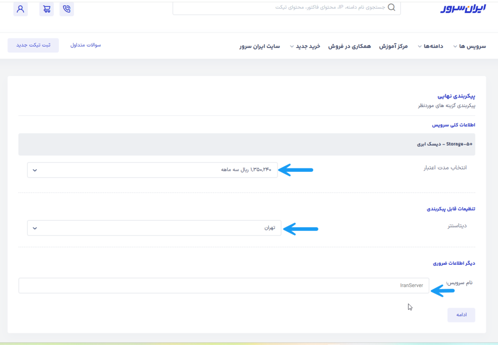 برای خرید دیسک ابری از ایران سرور، کافی است مراحل زیر را به ترتیب دنبال کنید: