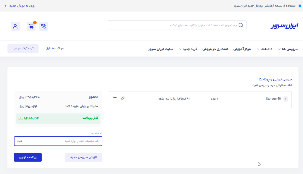 نکته: در صورتی که به سرویس دیگری نیاز دارید، می‌توانید از گزینه سرویس جدید استفاده کنید.