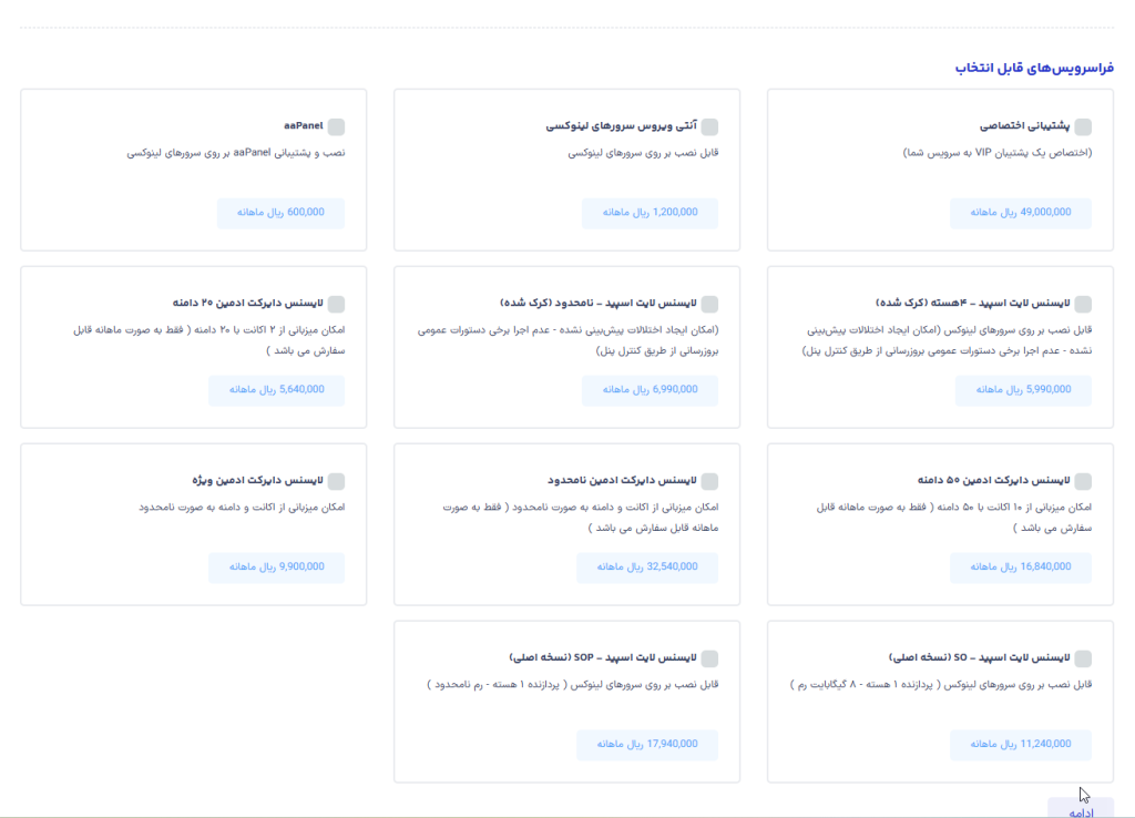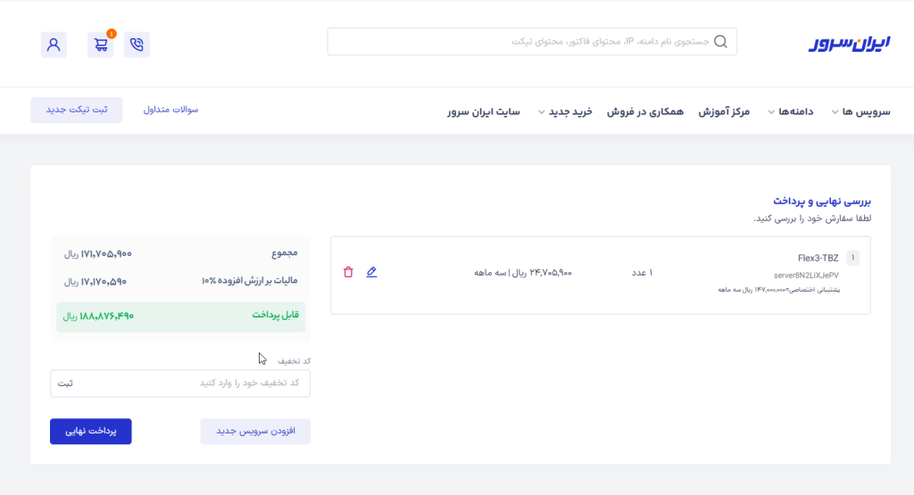 نکته: در صورتی که به سرویس دیگری نیاز دارید، میتوانید از گزینه سرویس جدید استفاده کنید.