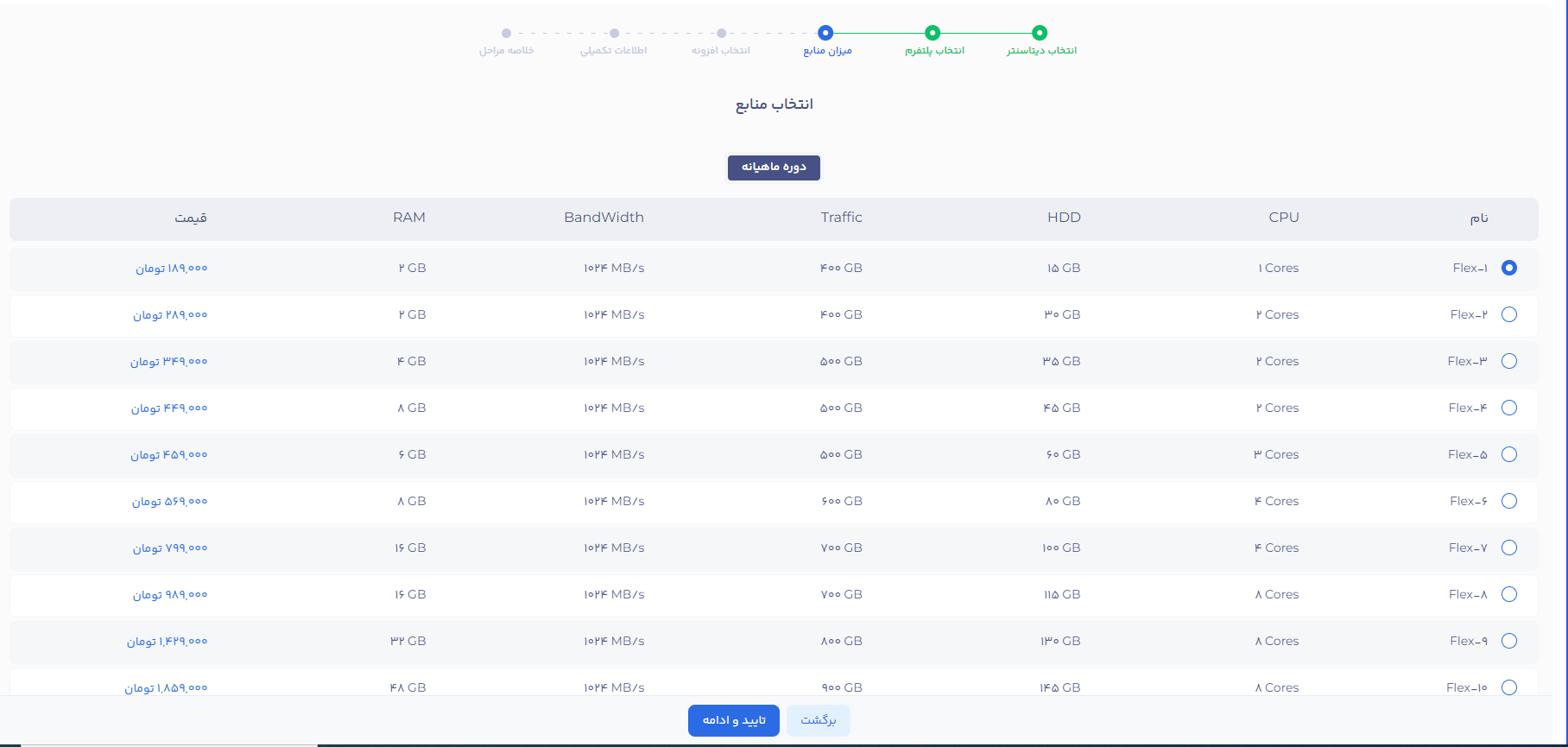 از این بخش میتوانید بسته ترافیکی مورد نظر خود را خریداری کنید. با خرید بسته جدید، حد مجاز ترافیک شما افزایش خواهد یافت. ترافیک مازاد را در هر لحظه از سیکل سرویس میتوان خریداری کرد.