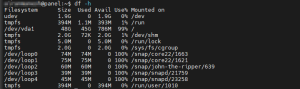 این دستور فضای دیسک و پارتیشنهای متصل (Mounted) را نمایش میدهد.