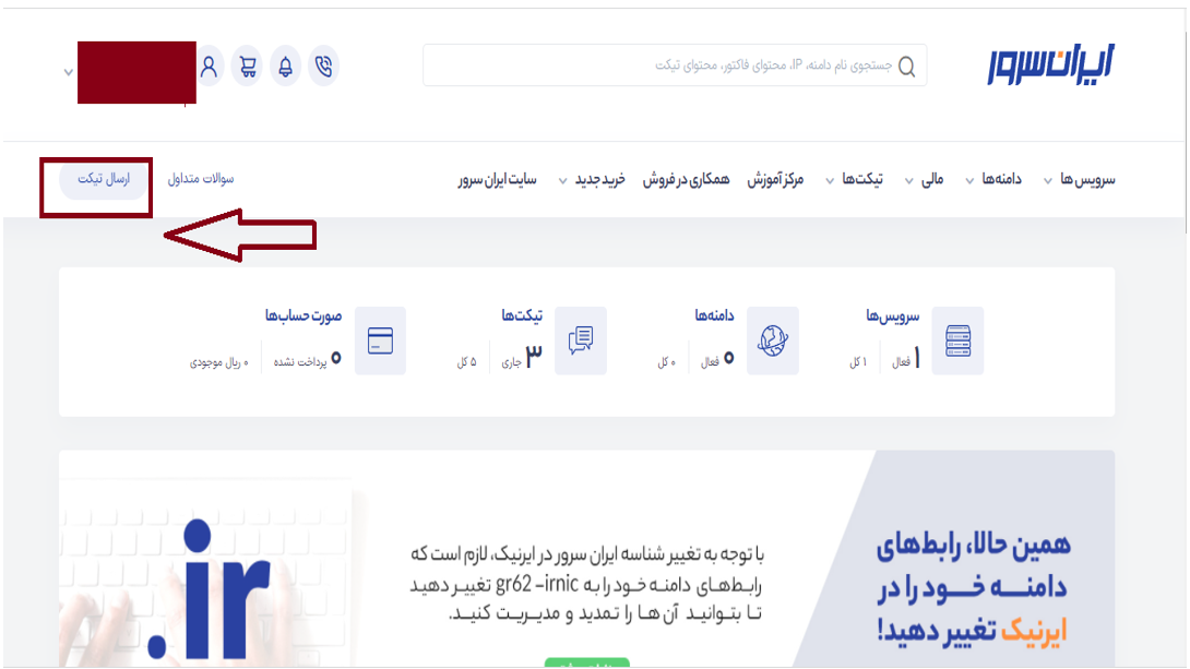 ۱- ابتدا وارد حساب کاربری خود در ایران سرور شوید و از این طریق با ما در ارتباط باشید :