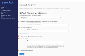 این تنظیمات به شما اجازه میدهند که تعیین کنید چگونه سرور با ایمیلهایی که به آدرسهای نادرست ارسال میشوند برخورد کند. گزینه Reject معمولاً بهترین انتخاب برای جلوگیری از بار اضافی روی سرور است، در حالی که Forward to address میتواند در مواردی که نمیخواهید ایمیلی را از دست بدهید، مفید باشد.