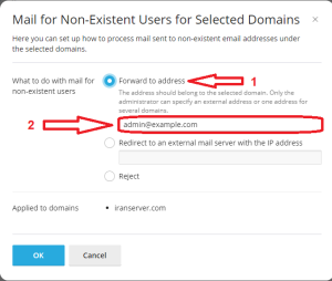 با این گزینه، ایمیلهای ارسال شده به آدرسهای نامعتبر به حساب سیستمی شما (مثلاً “iranserveriranse”) فوروارد میشوند. معمولاً این گزینه برای بسیاری از کاربران ضروری نیست.