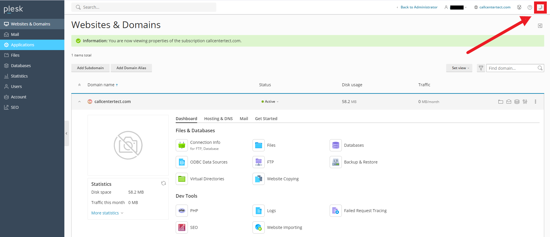 برای انجام این کار کافیست روی گزینه زیر در صفحه اصلی کنترل پنل (بالا سمت راست) کلیک کنید.