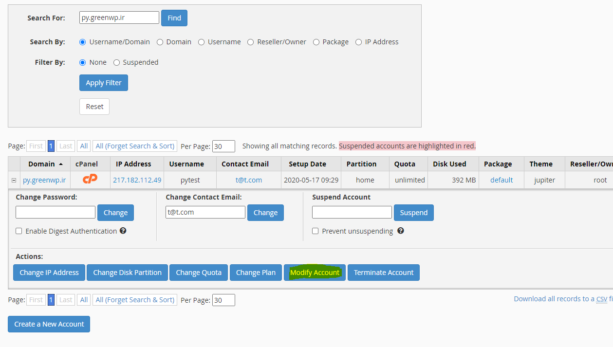 3-سپس بر روی گزینه modify account کلیک نمایید.
