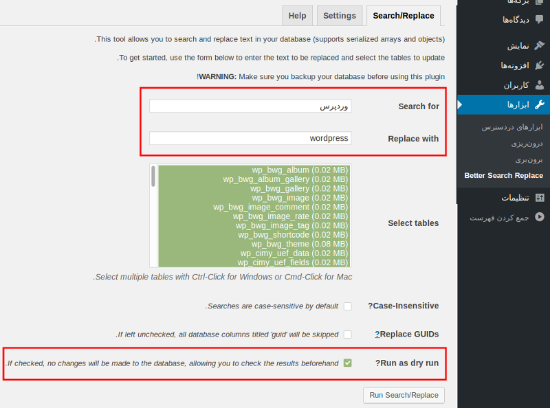 *پس از انجام موارد بالا وارد پنل پیشخوان شده و افزونه better search replace را نصب نمایید و لینک هایی که در دیتابیس مربوط به نام دامنه قبلی بوده اند را به نام دامنه جدید تغییر دهید.