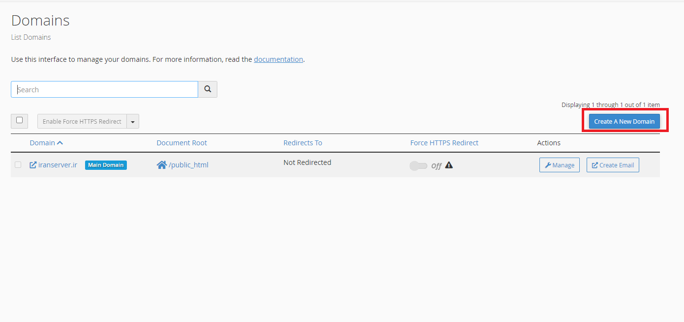 بعد از آن میبایست بر روی گزینه create a new domain کلیک نمایید