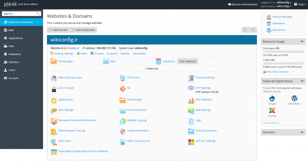 پس از ورود پیغام خوش آمدگویی و… نمایش داده شده و پس از قبول Term Of Service وارد پنل مدیریت خواهید شد. در پنل مدیریت میتوانید دیتابیسها و کامپوننتهای مورد نیاز خود را اضافه و پکیجهای مدیریتی هاست خود را بسازید و سرویس دهی خود را آغاز کنید.