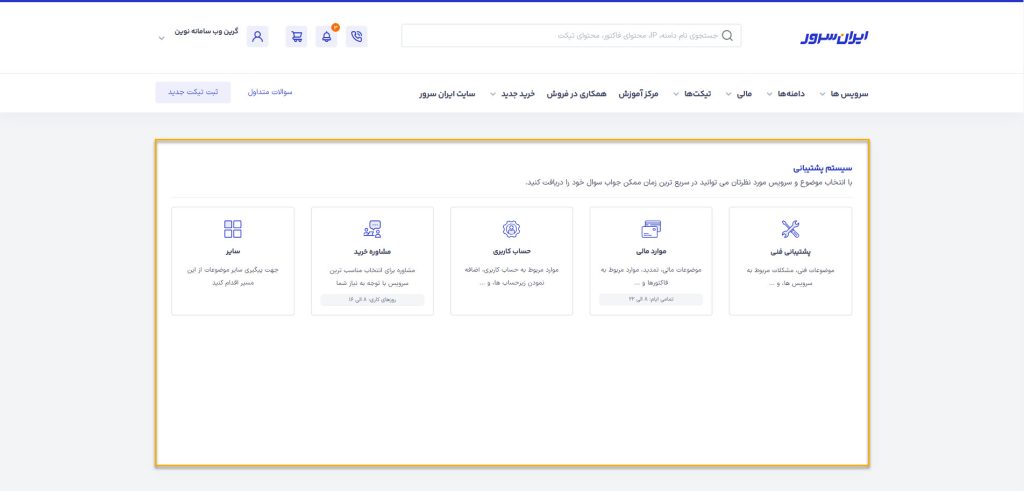 راه دیگری که میتوانید سوالات خود را مطرح کنید و در سریعترین زمان ممکن پاسخ مورد نیاز را دریافت کنید، ثبت تیکت در پرتال مشتریان است. برای آشنایی با پروسه ثبت تیکت به این مقاله مراجعه کرده و برای ثبت تیکت روی این لینک کلیک کنید.