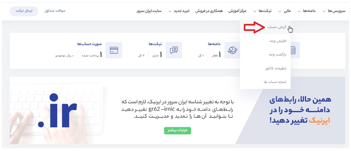 در این شرایط، فاکتور تمدید سرویس در پنل کاربری در سربرگ «مالی» گزینهی «گردش حساب» قابل مشاهده است و پس از پرداخت، تمدید آن نیز به صورت اتومات توسط سیستم انجام خواهد شد.