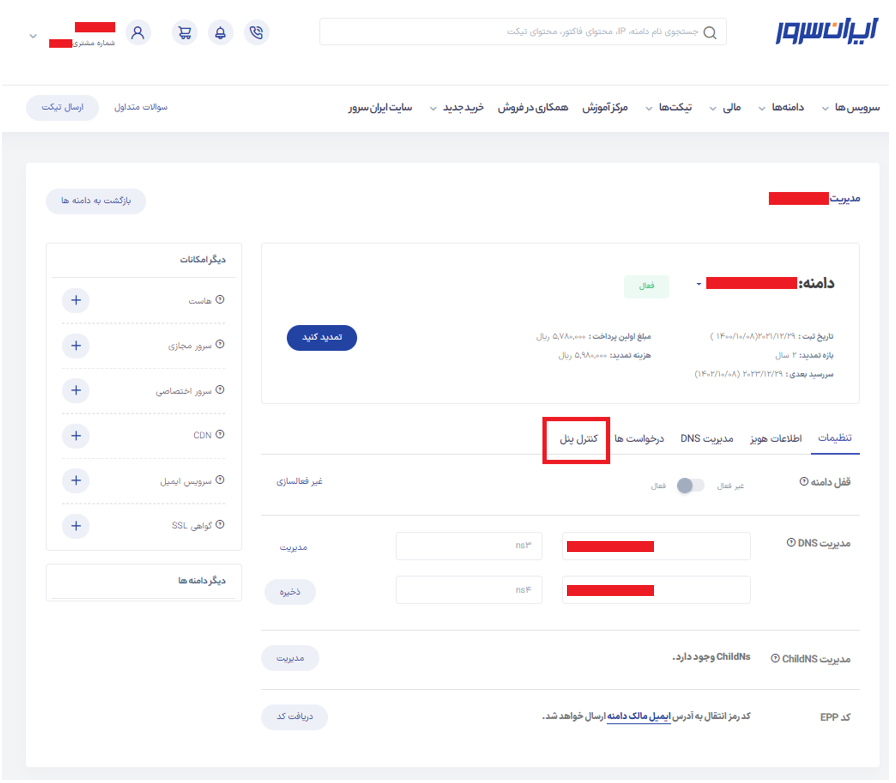 تا این مرحله با موفقیت توانستیم وارد کنترل پنل دامنهی مد نظر بشویم.