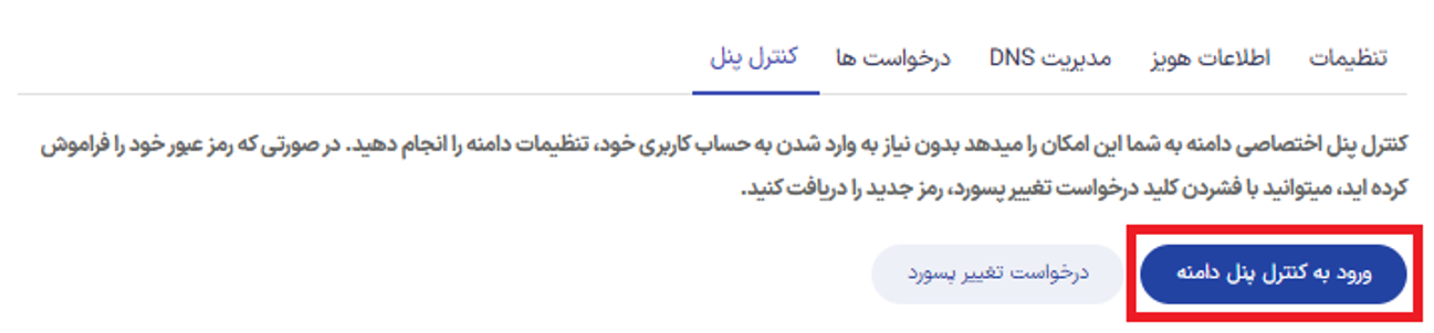 سپس بر روی گزینهٔ «ورود به کنترل پنل دامنه» کلیک کنید.