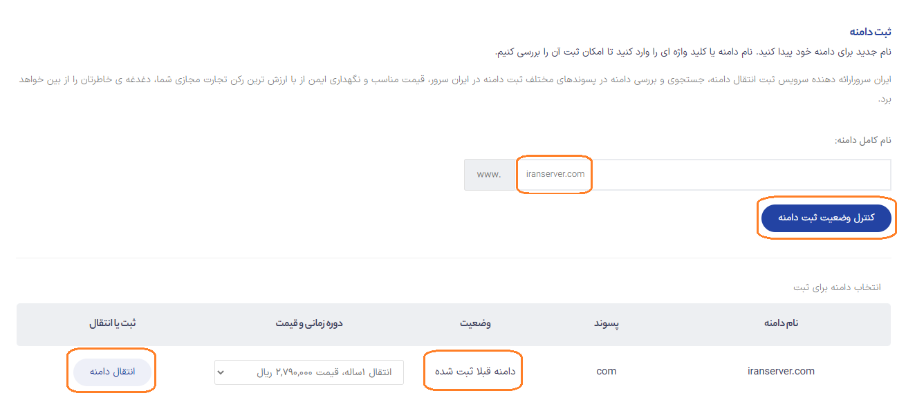 گزینهٔ انتقال دامنه مربوط به مالک دامنه است تا بتواند دامنهاش را به ایرانسرور منتقل کند و برای شما کاربردی نخواهد داشت.