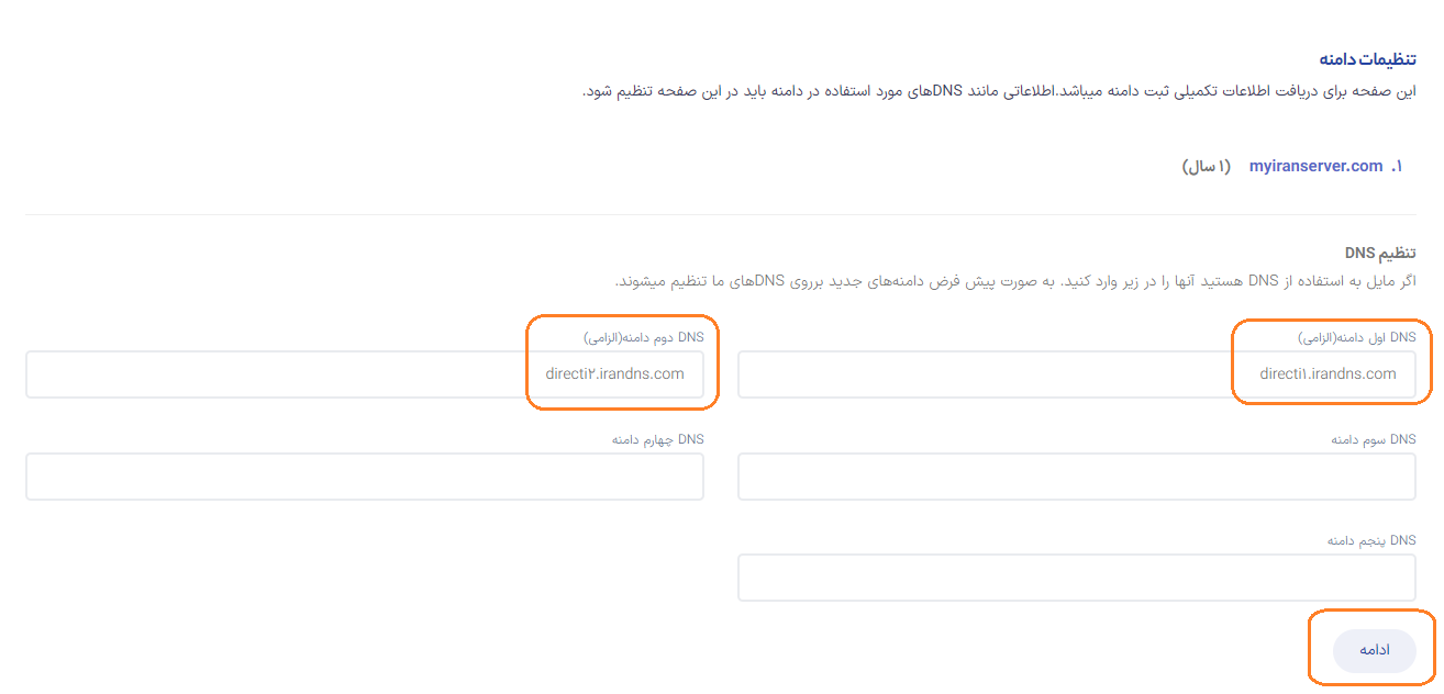 البته فراموش نکنید که بعد از ثبت دامنه نیز امکان ویرایش نیمسرورها وجود دارد و موقتا میتوانید از نیمسرورهای پیشفرض استفاده کنید.