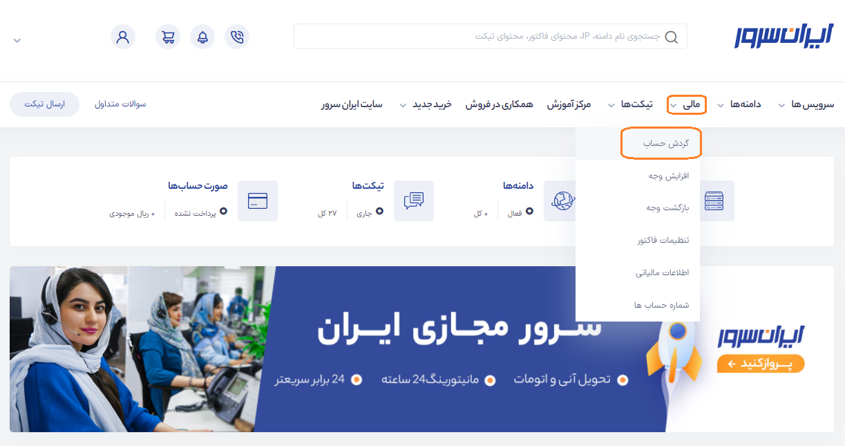 جهت دانلود نسخهٔ رسمی میتوانید از سربرگ «مالی» گزینهٔ «گردش حساب» را انتخاب کنید.